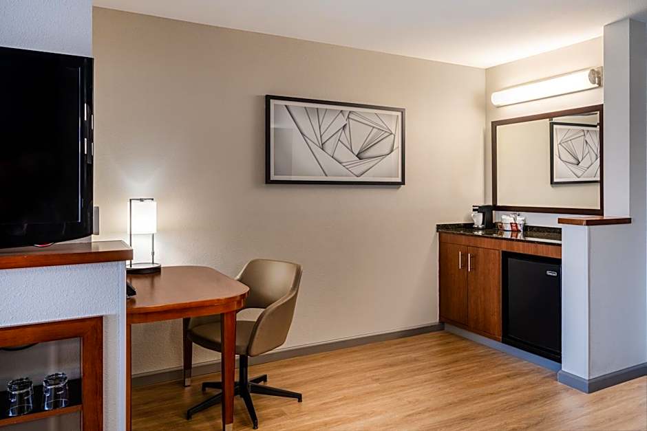This family room has air conditioning and tea/coffee maker, as well as a cable TV.
